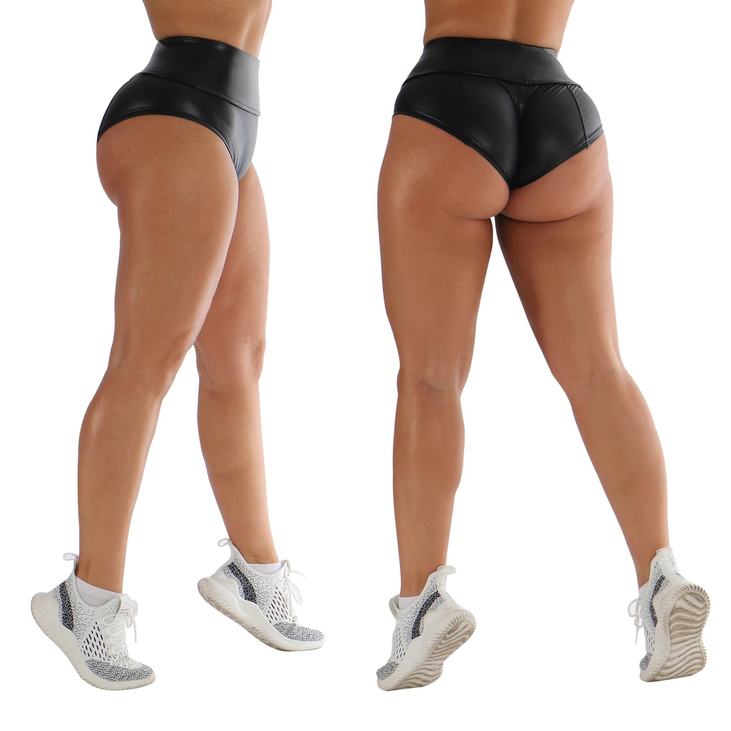 Shine in these quality, faux leather high-waist shorts—sleek, stretching to fit for comfort, and curve-hugging. Perfect for edgy and modern style statements.